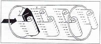 在蒸汽流体中设置三角柱型旋涡发生体,则从旋涡发生体两侧交替地产生有规则的旋涡,这种旋涡称为卡门旋涡,如右图所示,旋涡列在旋涡发生体下游非对称地排列。