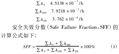 根据元器件失效模式和影响分析(FMEA),测试计算出各可靠性块的安全失效率λS、可检测危险失效率λDD和不可检测危险失效率λDU的总和如下: