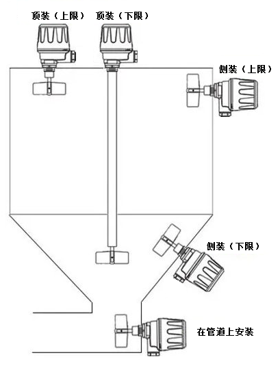 1.水平安装时,建议将开关以水平向下呈15°~20°的夹角安装,以减少物料的冲击。