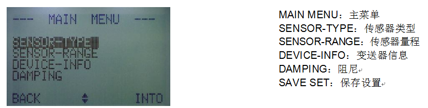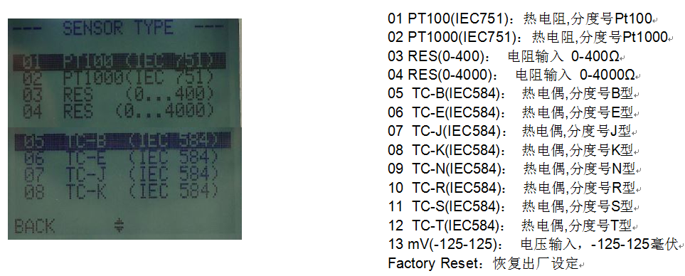 按钮进入 SENSOR-TYPE(传感器类型)子菜单,按