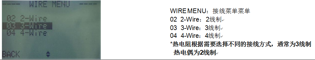 按钮进入WIRE MENU(接线菜单)子菜单,按