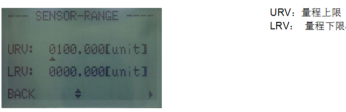 按钮进入 SENSOR-RANGE(传感器量程)子菜单,设定传感器量程。