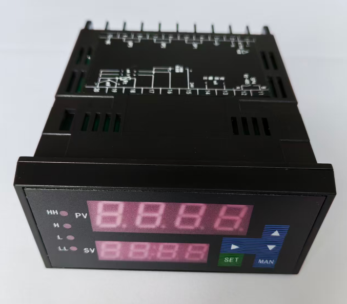 智能测控仪设置温度的上限并带报警信号输出或者只能测控仪上面板带有报警灯闪烁提醒操控人员注意,以保证工业生产中运行设备的运行安全。