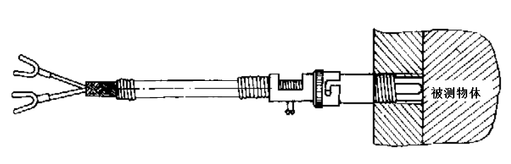 WRNT-01、WRET-01型压簧式固定热电偶的安装方法如下图所示,固定安装在被测物体上面,先将连接螺栓拧紧在被测 物体上,再将热电偶紧贴被测物,拧紧卡套螺钉,最后拧上锁紧卡套。