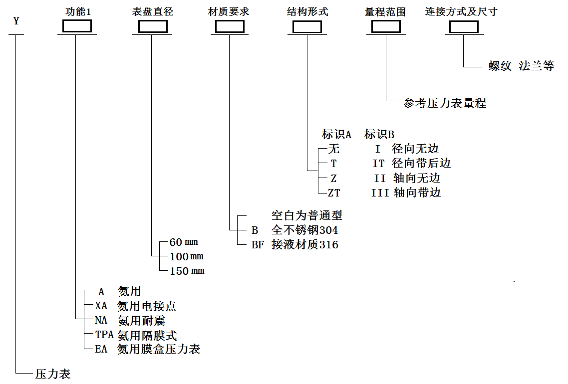 2、本公司还提供YNA系列耐震氨压力表,YXCA氨用电接点压力表.YE氨用膜盒压力表,YTP氨用隔膜压力表等产品。
